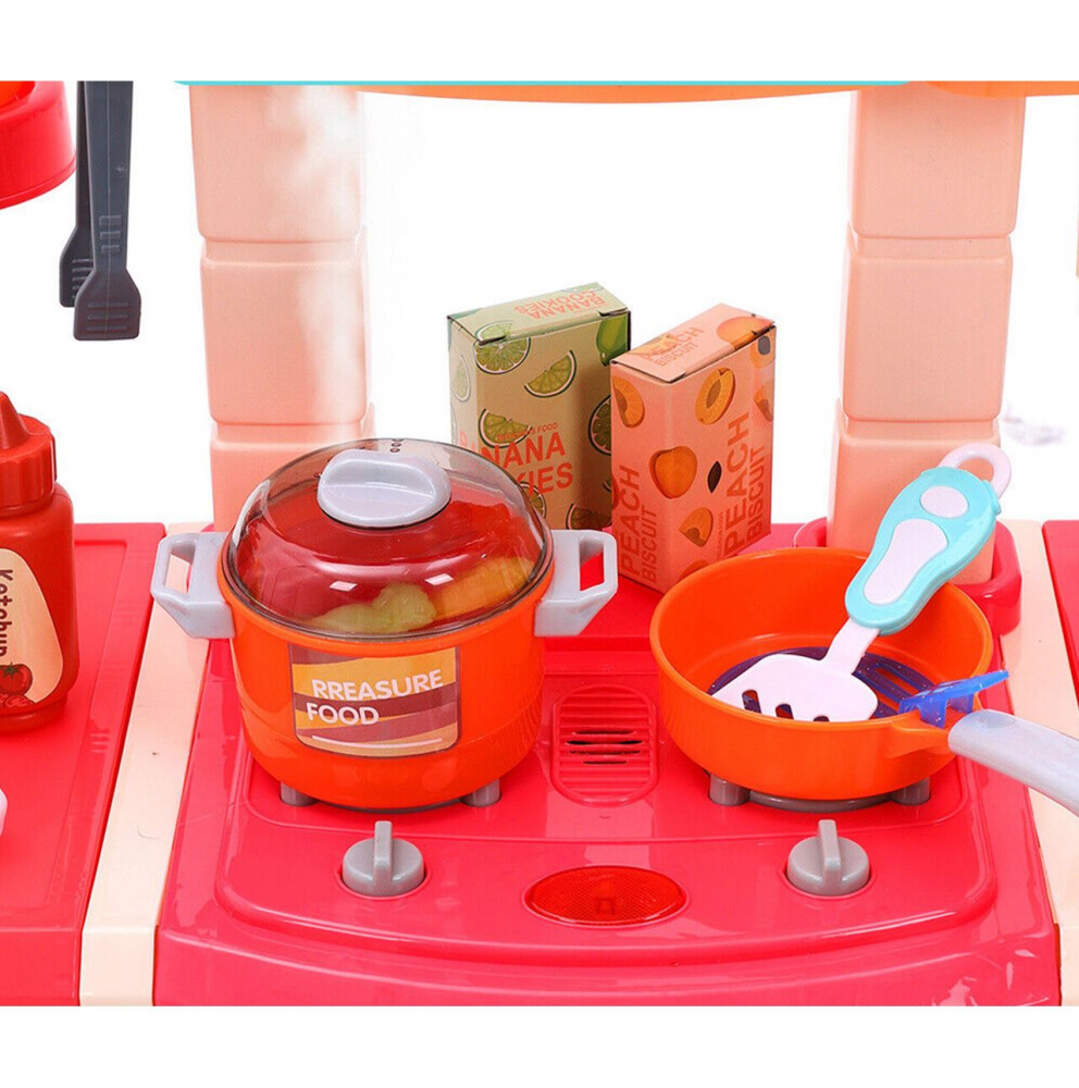 Culorile vii, aspectul traditional, luminile, efectele sonore si pulverizarea cu aburi face aceasta bucatarie sa arate precum una reala.