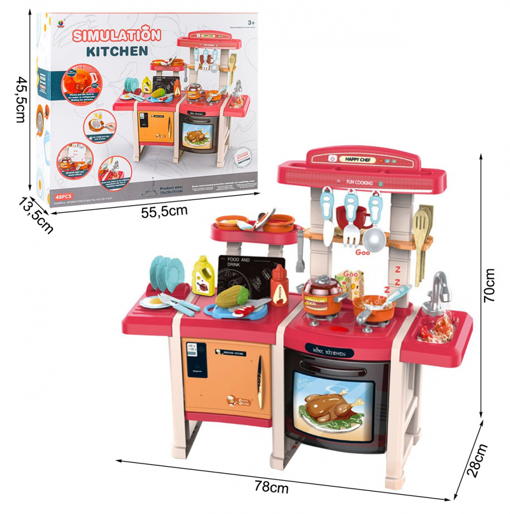 * Cu un set de accesorii de 45 de accesorii specifice, o chiuveta spatioasa si un design adorabil, acest set de joaca este completarea perfecta pentru dormitorul micului tau bucatar.