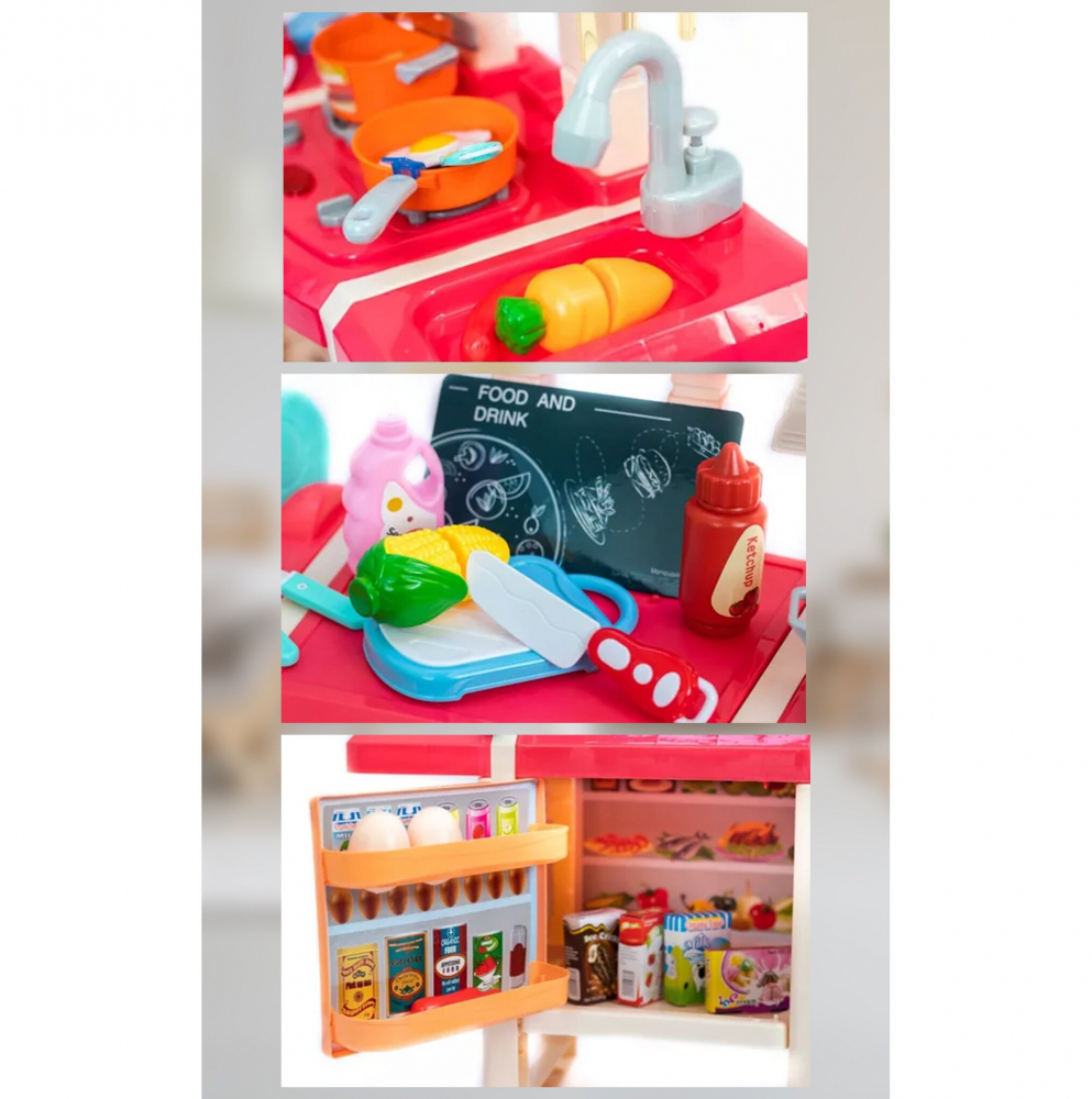 Bucatarie interactiva cu chiuveta functionala, apa curenta, Lumini, Sunete si 45 de accesorii specifice, 70 x 78 x 28 cm, Pink