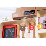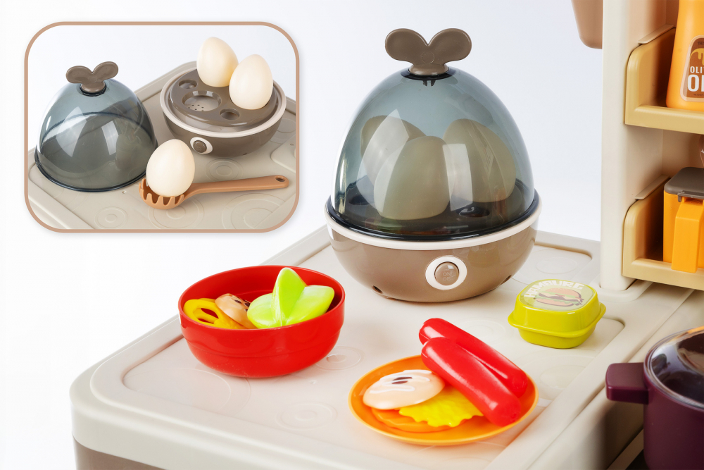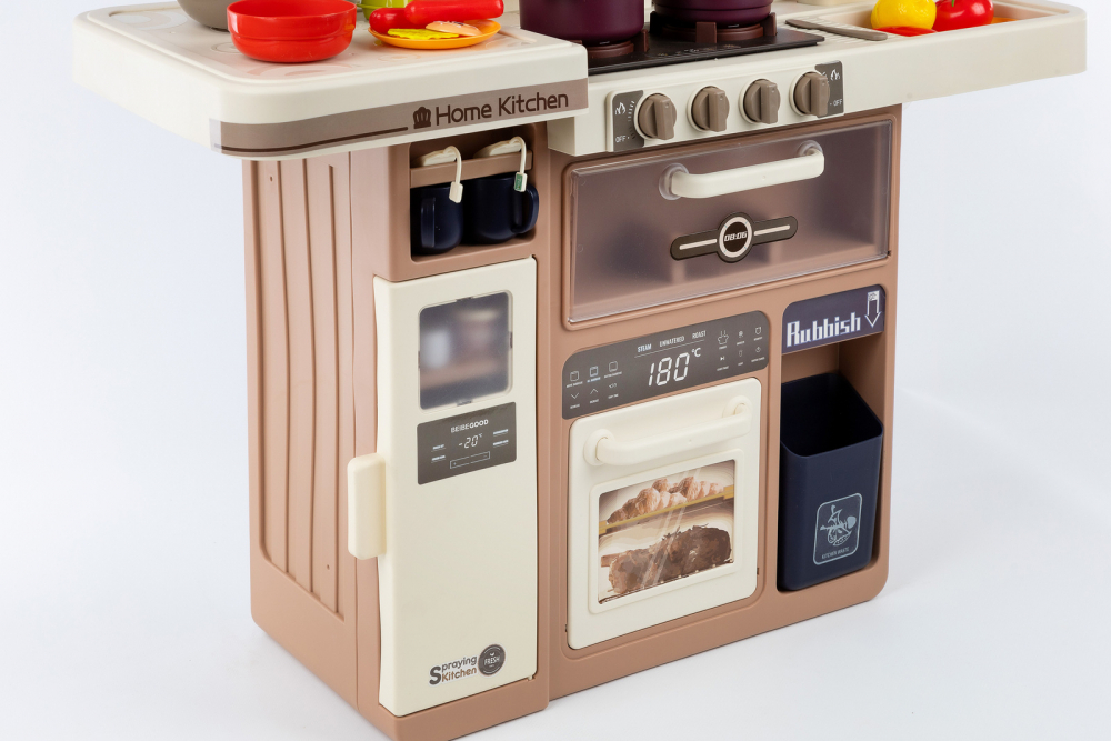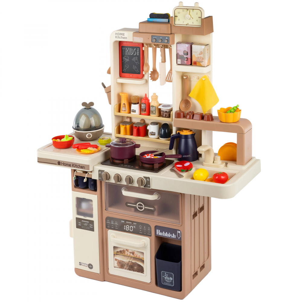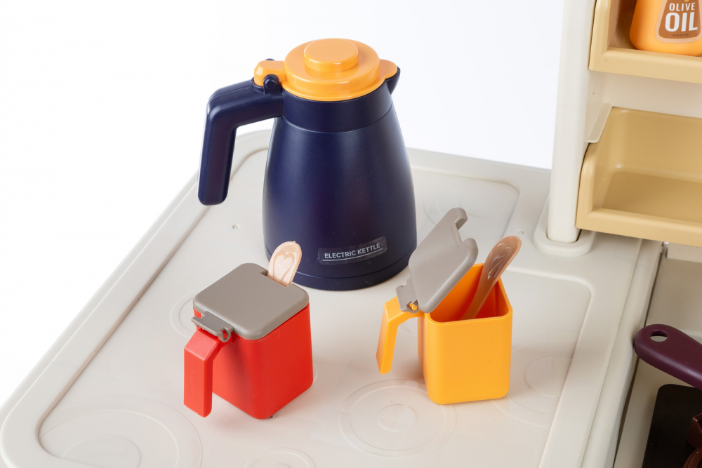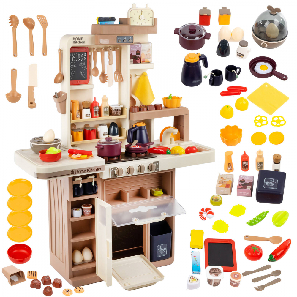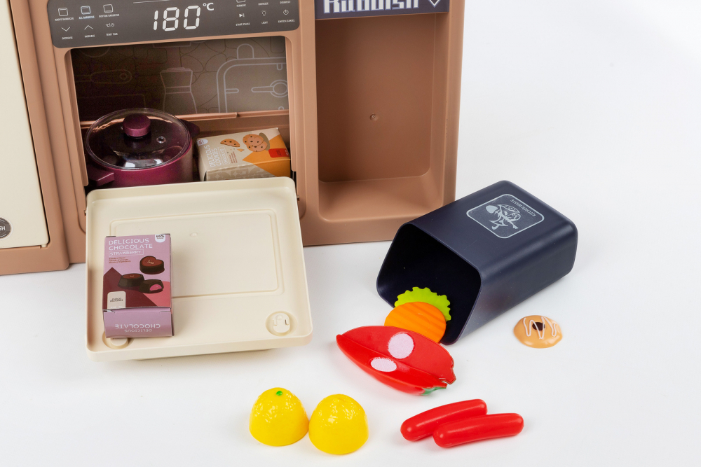 * Bucataria este dotata cu 74 de accesorii, printre care puteti regasi: fructe, legume, oale, cani, ulcioare, farfurii, tacamuri, prajituri, ciocolata, tabla, aragaz pentru oua, ketchup, mustar, piper, lapte