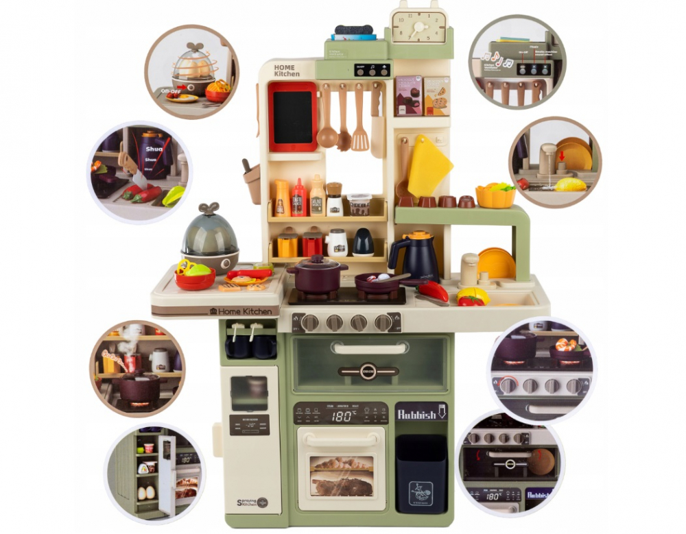 * Proiectata cu gandul la siguranta si distractie, bucataria inspira explorarea aromelor si creativitatea culinara prin joaca. O bucatarie care va antrena viitorul bucatar !