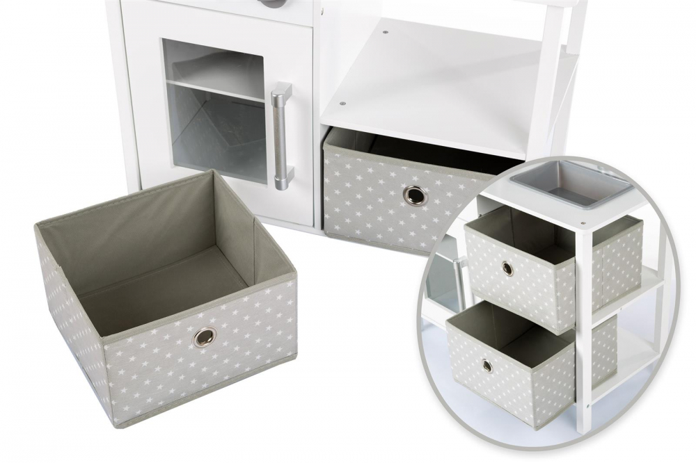 * Dotata cu doua cosuri: acestea pot fi folosite pentru depozitare de jucarii. De acum inainte, puteti mentine camera copilului ordonata, folosindu-va de cosurile incluse puteti depozita jucariile imprastiate;