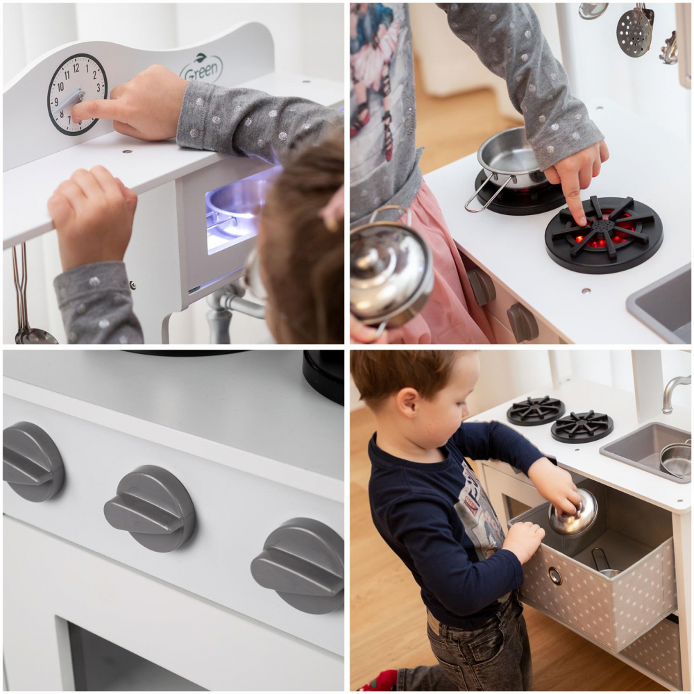 Bucatarie interactiva din lemn cu sunete lumini LED si cuptor Vintage White