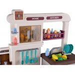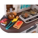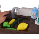 Bucatarie interactiva pentru copii brown, cu chiuveta functionala, lumini, sunete, efect de abur si accesorii de gatit incluse, dimensiune 80 x 100 x 28 cm
