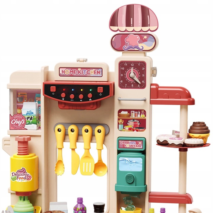 Bucataria are un robinet cu apa adevarata. Chiuveta este echipata cu un circuit inchis, astfel incat micul bucatar isi va putea spala vasele in orice moment.