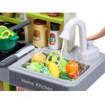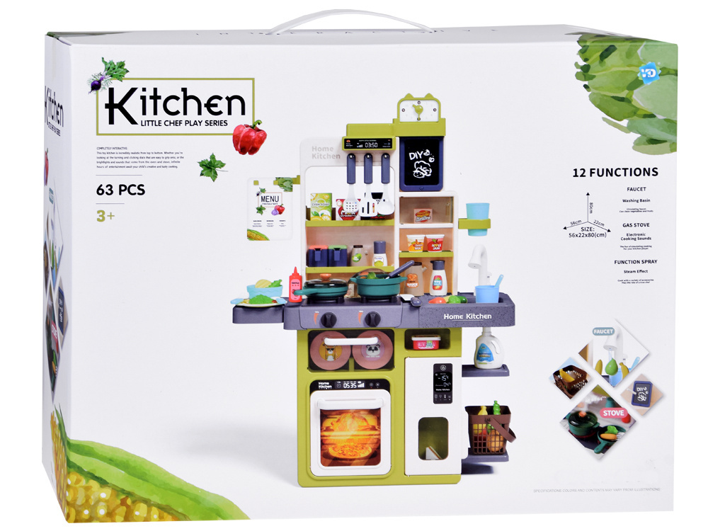 Bucatarie interactiva pentru copii cu chiuveta functionala, abur, lumini, sunete si 63 de accesorii incluse, dimensiune 80 x 53 x 20 cm