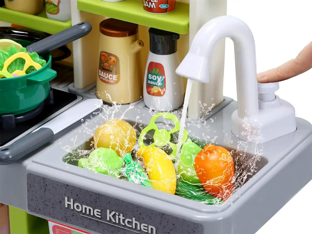 Robinet cu Apa Curenta: Copiii pot simula spalatul vaselor si al ingredientelor, avand control complet asupra debitului de apa - un plus de autenticitate!