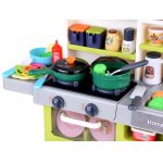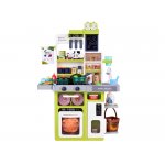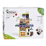 Set Bogat de 63 de Accesorii: Include vase, oale, tacamuri si o varietate mare de produse alimentare de jucarie (legume, fructe, condimente, sucuri), inclusiv un cos de legume si un sortator de cereale, incurajand jocul versatil si creativ.