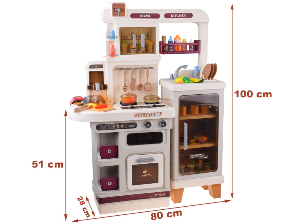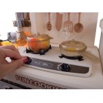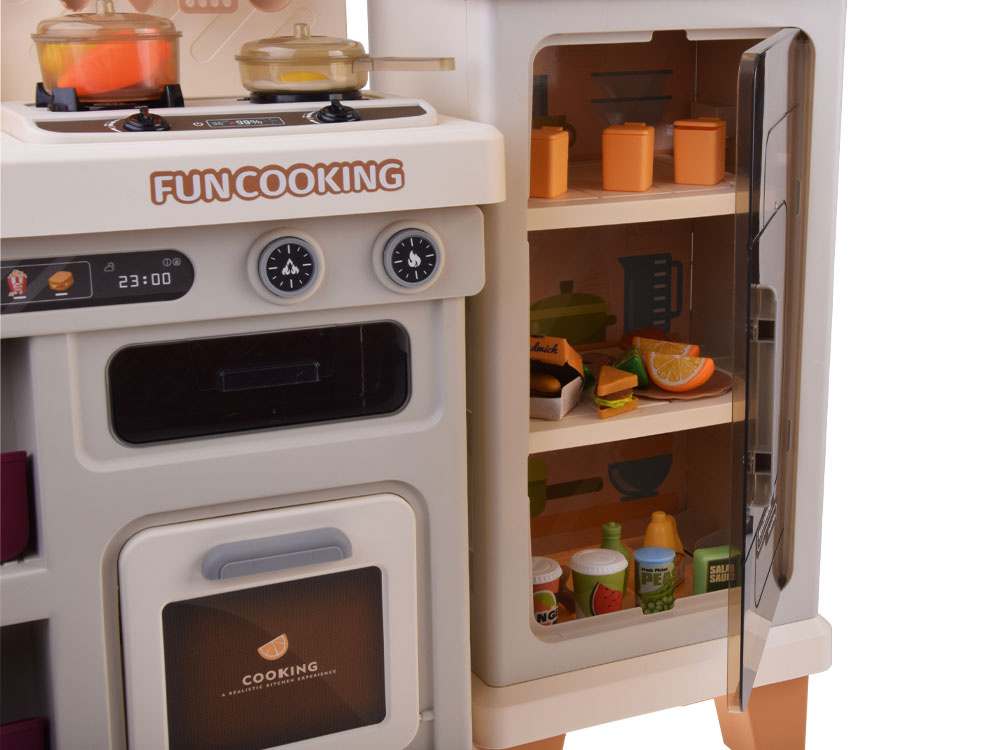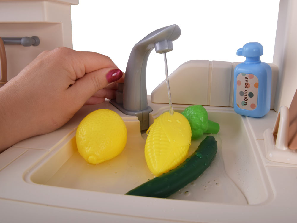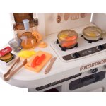 Bucatarie interactiva pentru copii Jokomisiada beige, cu chiuveta functionala, lumini, efect de abur, sunete si accesorii de gatit incluse, dimensiune 80 x 100 x 28 cm