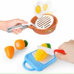 * Vine cu atat de multe accesorii de joaca, inclusiv vesela, legume, oale, tigai, canute, tocator, etc.