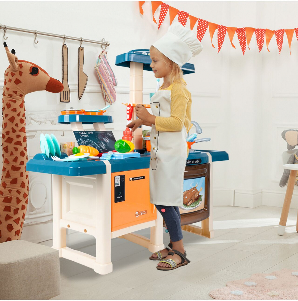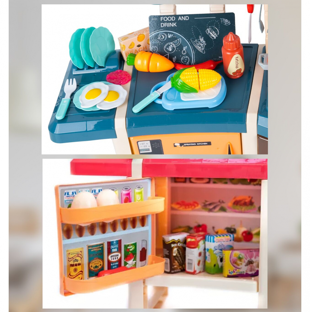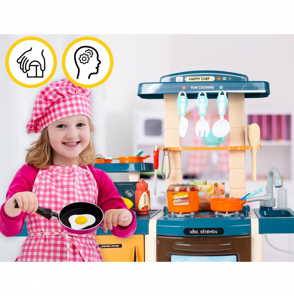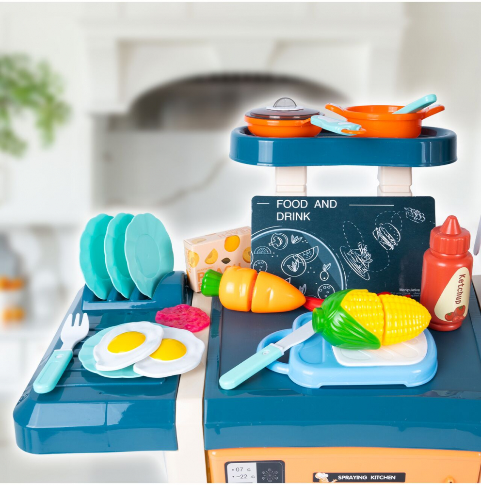 * Culorile vii, aspectul traditional, luminile, efectele sonore si pulverizarea cu aburi face aceasta bucatarie sa arate precum una reala.