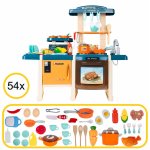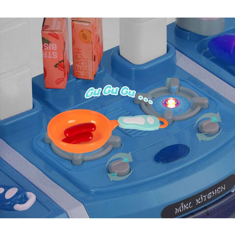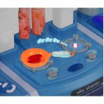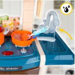 Bucatarie interactiva pentru copii Malplay Blue, cu lumini, sunete, circuit de apa si 45 accesorii incluse