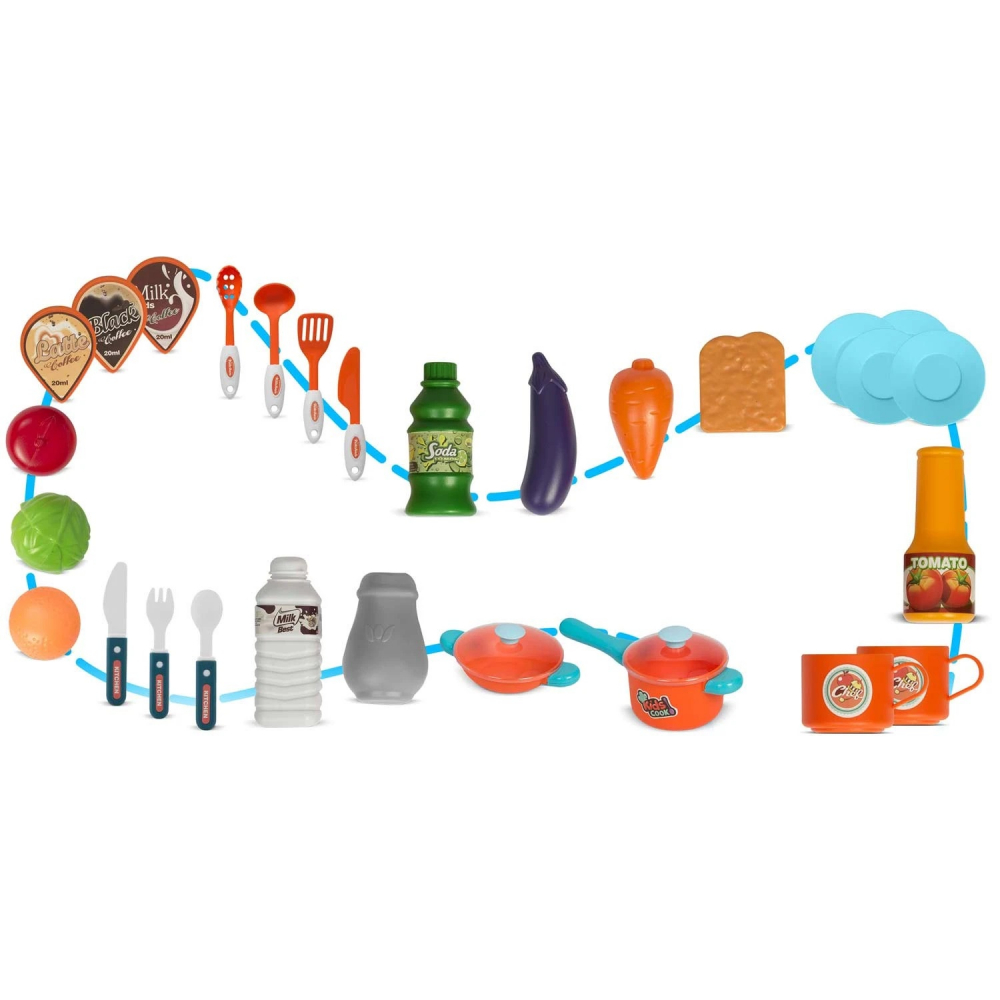 Inclus in set :Mancare,oale si accesorii de bucatarie,un arzator sonor cu iluminare LED.