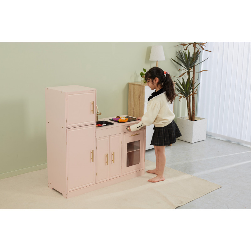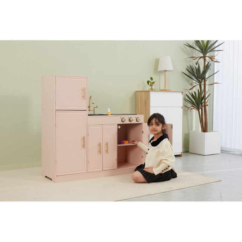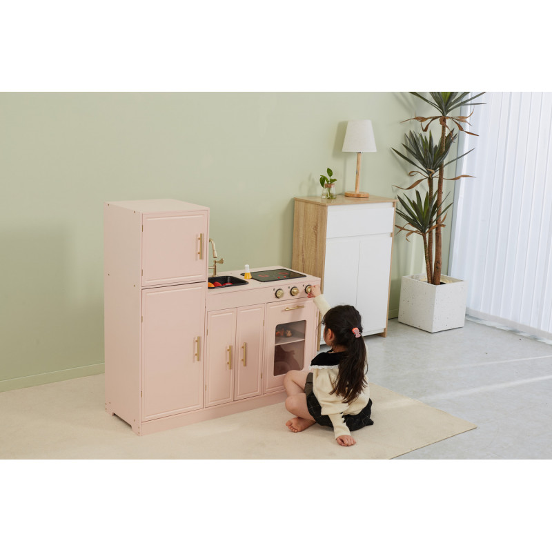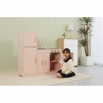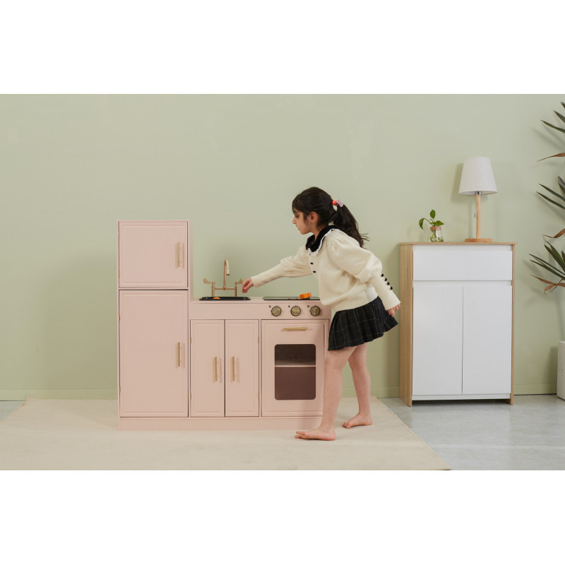 Acest set de bucatarie in stil nordic contemporan, ideala pentru jocurile de rol, include un frigider, chiuveta, dulap cu spatiu pentru depozitare, aragaz si cuptor.