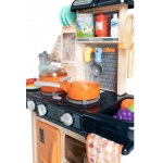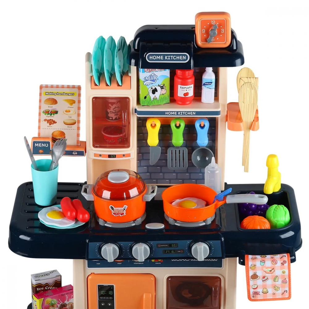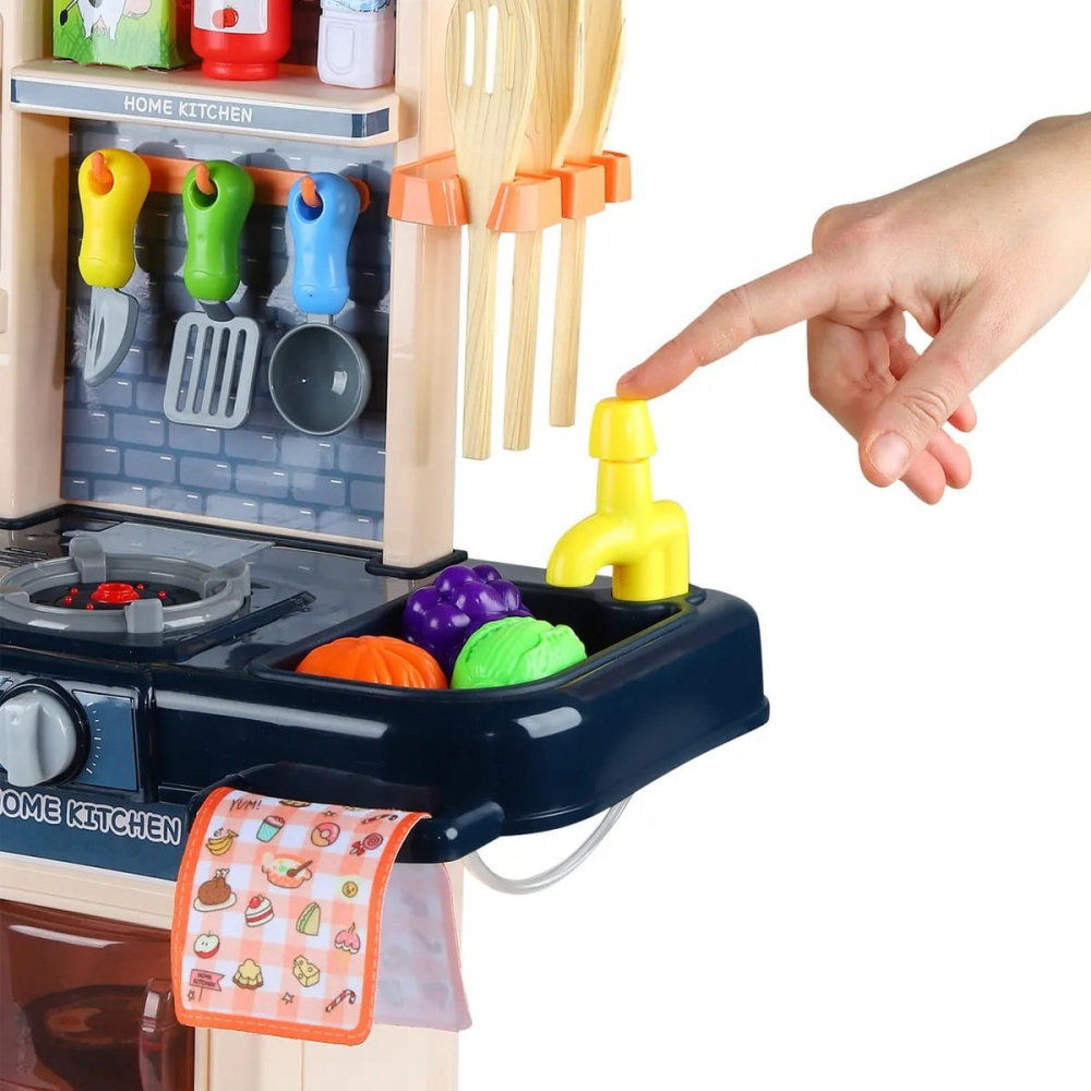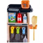Bucataria are, de asemenea, o chiuveta incorporata cu robinet ( din care apa reala poate zbura ), rafturi, pandantive pentru ustensile si accesorii de bucatarie, precum si o oala si o tigaie.