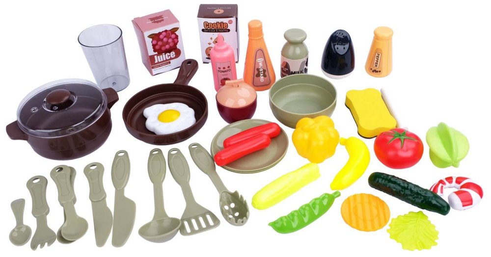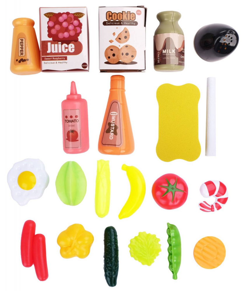 O gama intreaga de feluri de mancare, vase si tacamuri este disponibila pentru mica hostess /gazda. Nici legumele nu au fost uitate,ambalaje din fructe sau carton care imita produsele lactate.