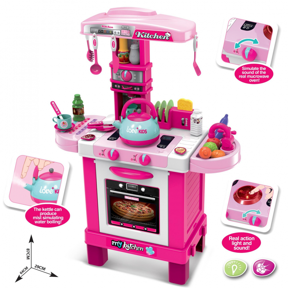 Copilul va putea pregăti în mod independent multe feluri de mâncare noi interesante, imitând-o pe mama sa într-o nouă bucătărie miracolă.
