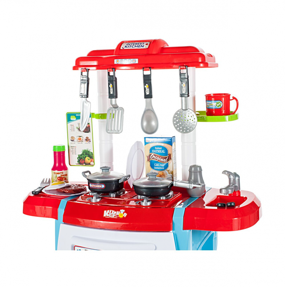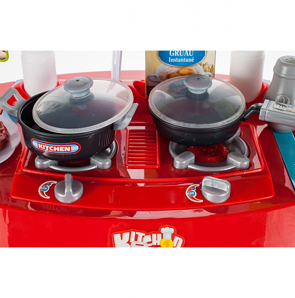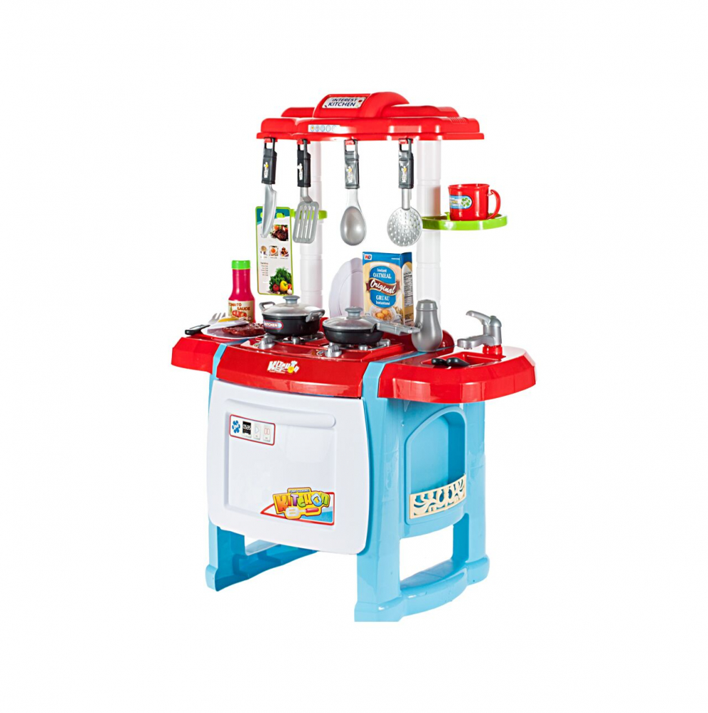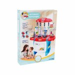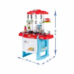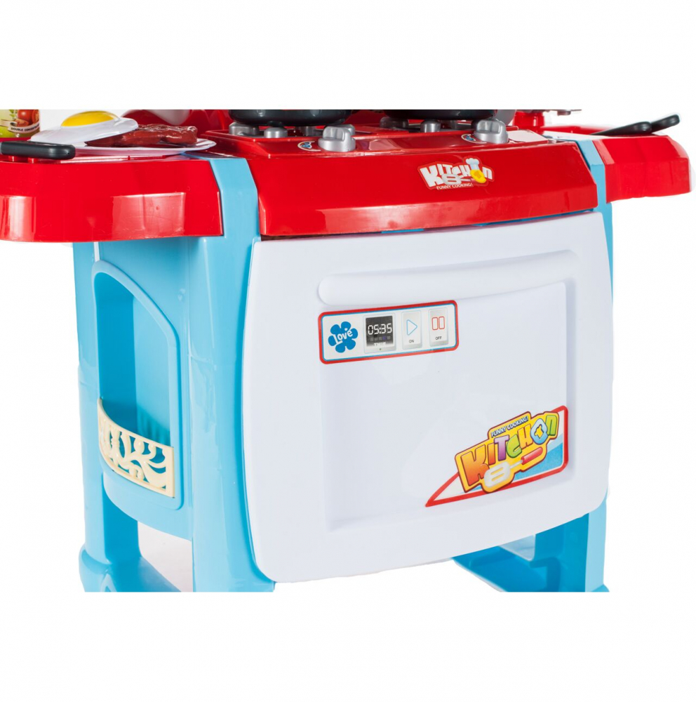 Bucatarie pentru copii cu sunete, 2 arzatoare luminoase, cuptor cu usa mobila si 17 accesorii incluse, 62 x 52 x 36 cm, Blue