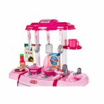 Bucatarie pentru copii cu sunete, 2 arzatoare luminoase, cuptor cu usa mobila si 17 accesorii incluse, 62 x 52 x 36 cm, Pink
