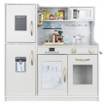 Bucatarie pentru copii, Kruzzel, realizata din lemn, cu Lumina LED si sunete realiste, chiuveta detasabila, si accesorii specifice incluse, White / Gold