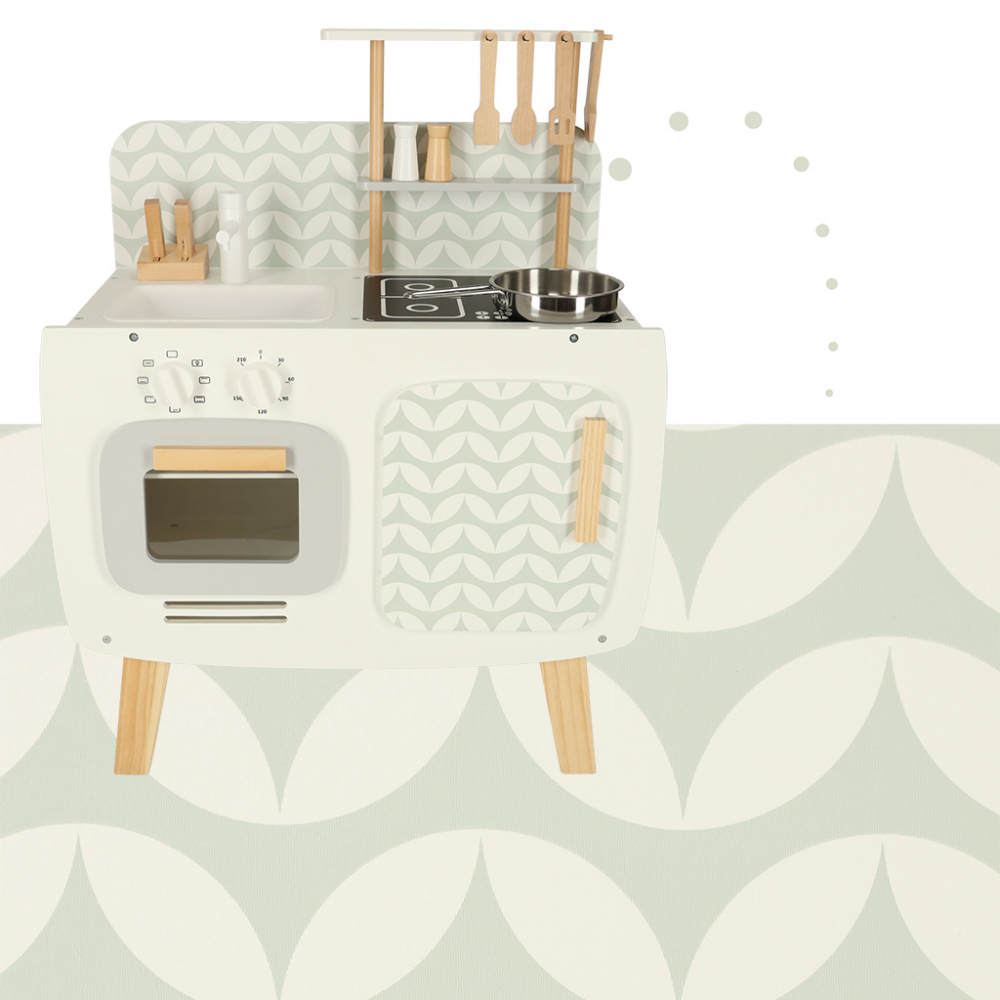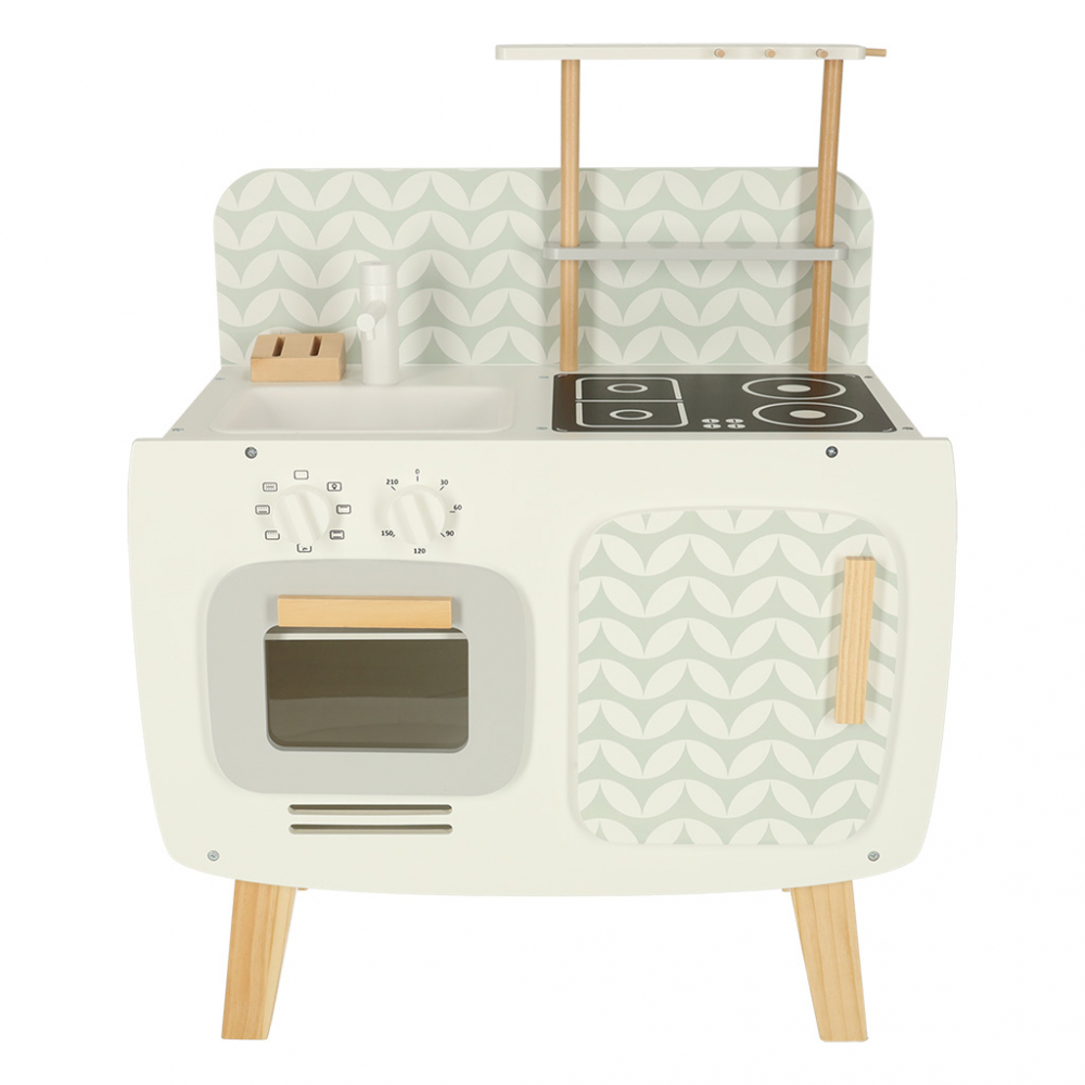 Bucatarie pentru copii Lulilo retro, din lemn mdf, cu aragaz, cuptor si chiuveta, dimensiune 58 x 72.7 x 29.2 cm