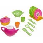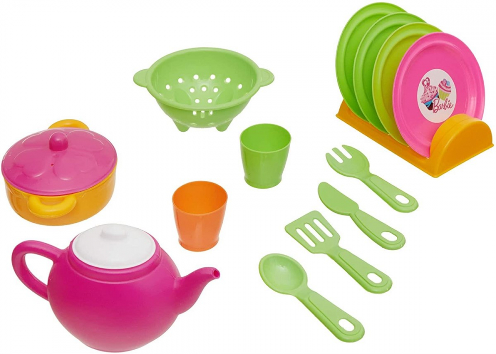 * Setul include strecuratoare, ceainic, farfurie mica, farfurie mare, oala, aragaz, cuptor, hota, suport pentru farfurii si oala.