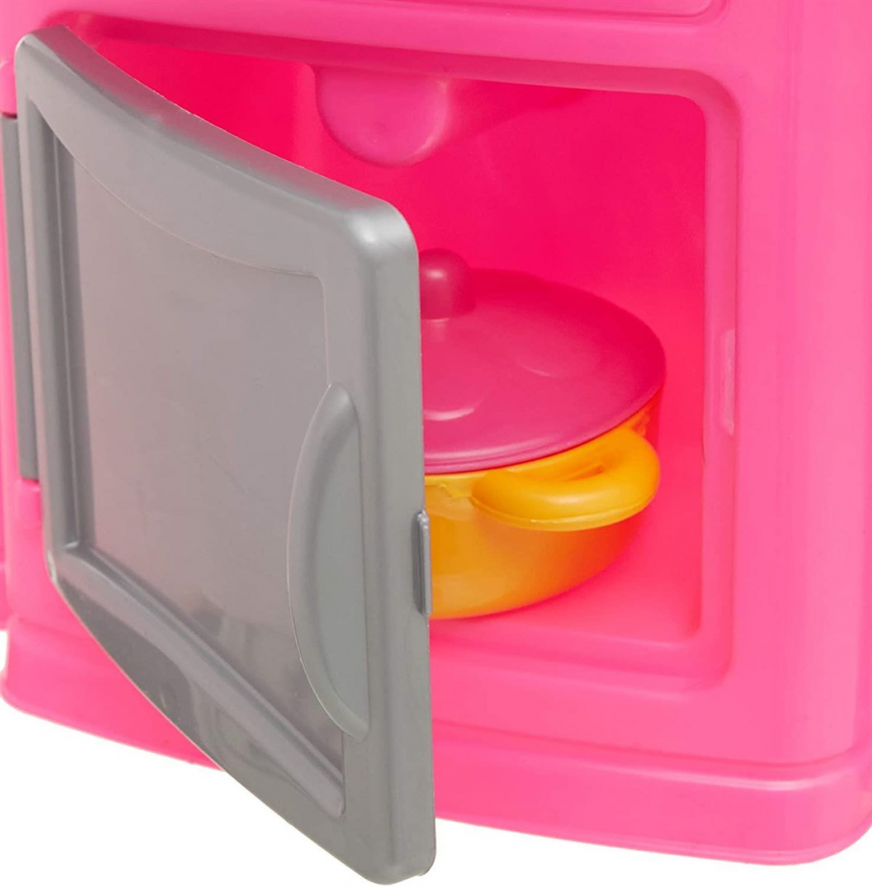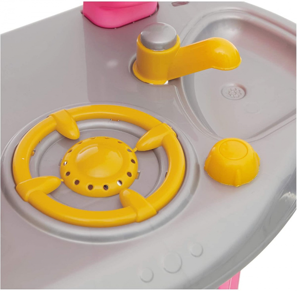 Intr-o bucatarie doar a lor, fetitele pot prepara diferite feluri de mancare la aragaz sau cuptor, pot aseza masa utilizand vesela si tacamurile din set, iar la sfarsit pot spala toate accesoriile in chiuveta.