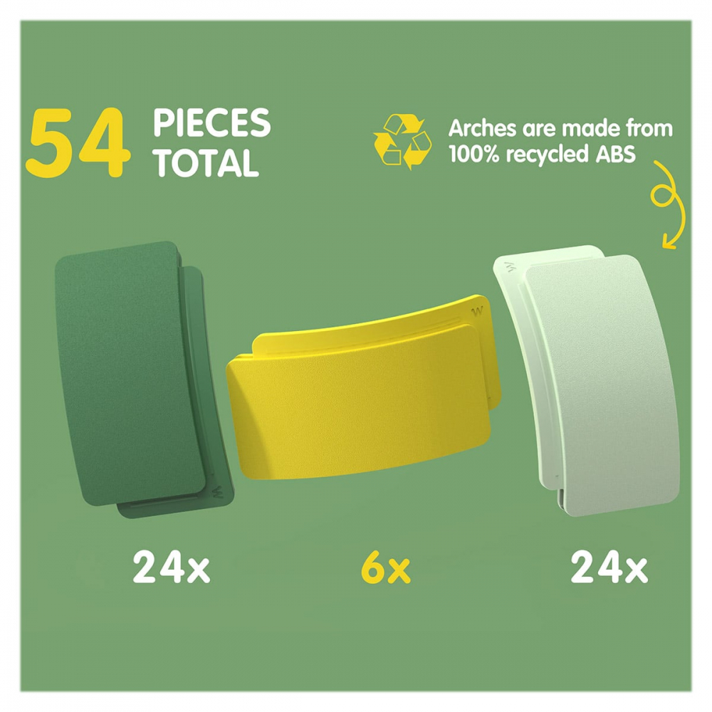 - Waytoplay Arches - Builder set contine 54 de piese din plastic, in trei culori diferite, si este compatibil cu restul sistemului Waytoplay, invitand copiii sa-si creeze propriile aventuri — piesa cu piesa.