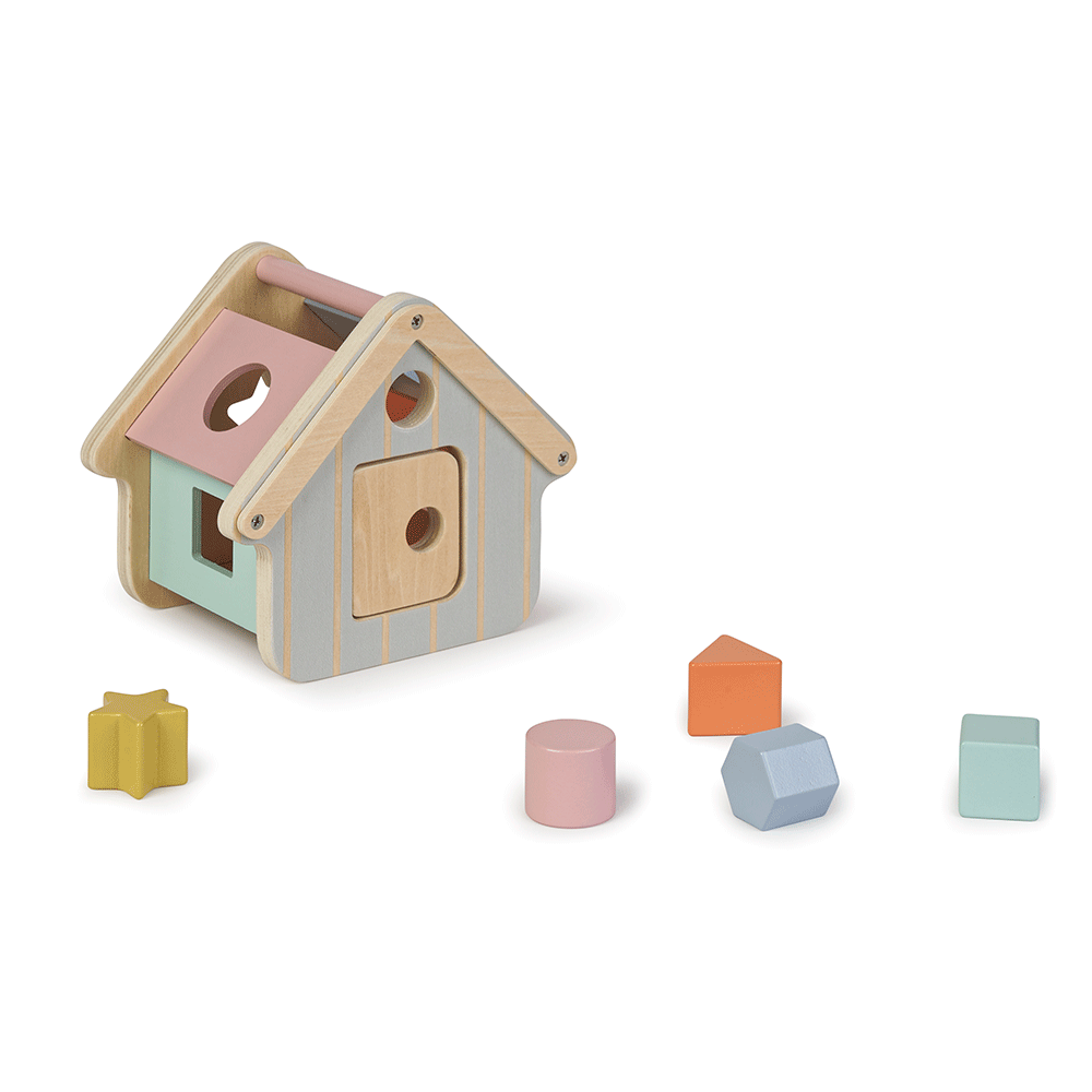Cioc-cioc! Cu această casă răcoroasă din lemn, micuțul tău va petrece ore întregi de distracție și învățare. Jocul pentru a-ți potrivi piesele este o activitate care îți va îmbunătăți abilitățile motorii fine în timp ce înveți să recunoști formele și culorile. Mânerul de pe acoperiș îl ajută pe micuțul tău să-l transporte cu ușurință.