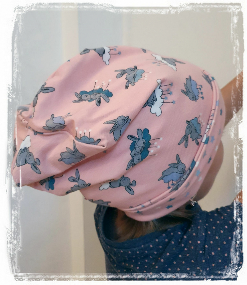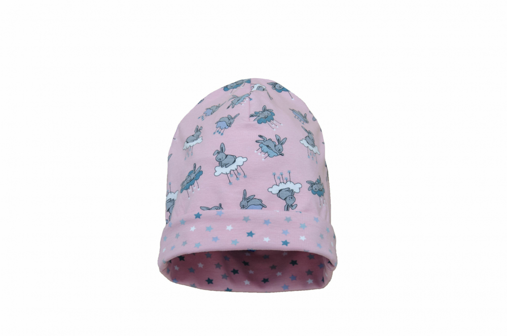 Caciula Bunny Pink cu bordura KidsDecor in strat dublu 50.2-52 cm