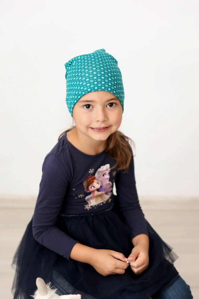 Combinatia de bumbac cu lycra face ca aceasta tesatura sa fie preferata de copii, fiindca nu-i trage de par si nici nu li se ridica de pe urechi.