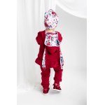 La interior, caciulita este captusita cu bumbac visiniu amestecat cu un mic procent de elastan, astfel incat sa nu se deformeze si sa se potriveasca perfect pe capul copilului.