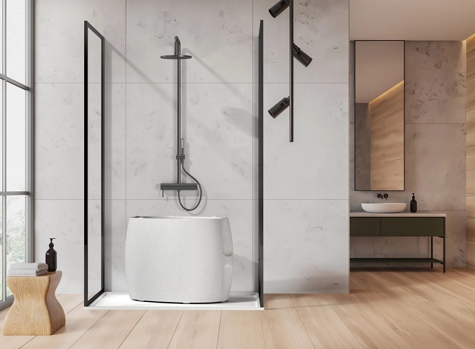 - Poate fi folosit la dus sau in aer liber ca mini-piscina