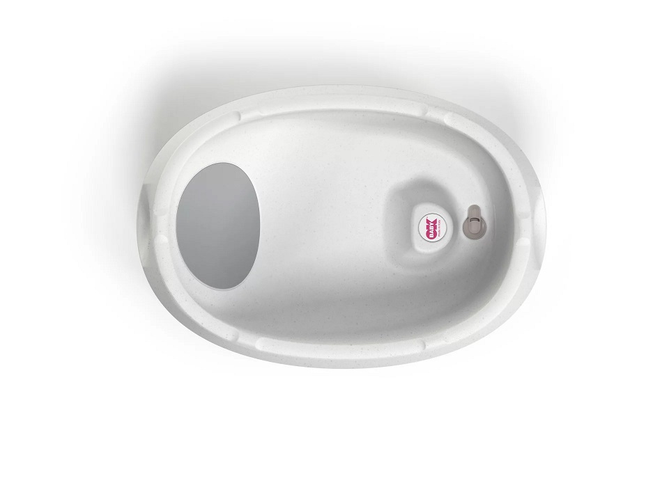 - Forma ergonomica si suportul integrat ofera o pozitie confortabila si sigura pentru bebelusi in timpul baii.