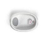 - Partea superioara: Destinata nou-nascutilor pana la 12 luni, echipata cu un suport inghinal pentru a preveni alunecarea, o perna confortabila si un termometru incorporat cu indicator de nivel recomandat al apei.
