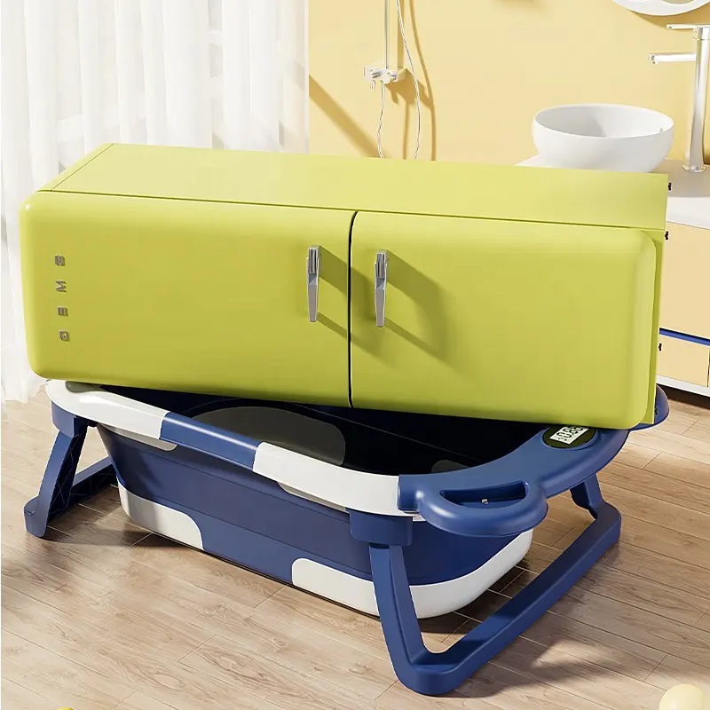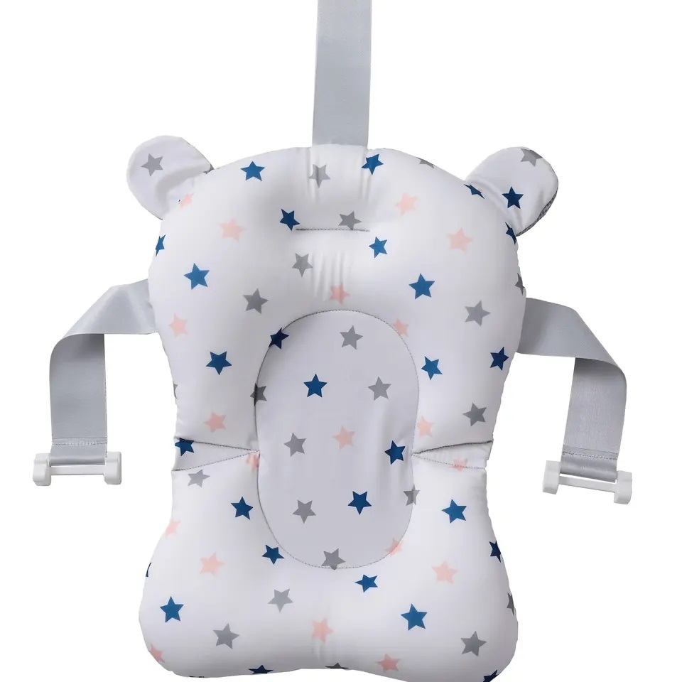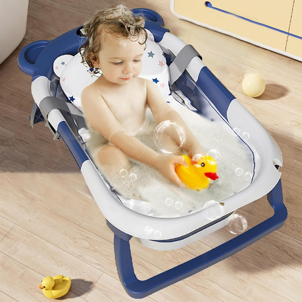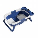 Cadita bebelusi ultrapliabila Little Mom Bear Blue, cu pernuta moale detasabila, termometru incorporat, display digital,suport cap de dus, sistem de agatare, dop pentru evacuarea apei, material non-toxic, 0-24 Luni