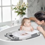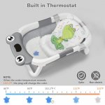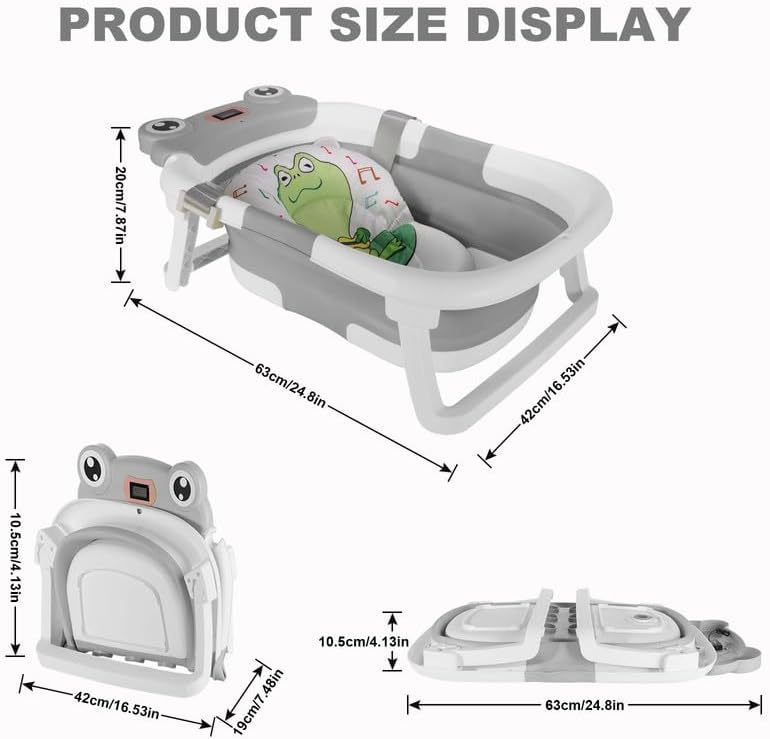 Cadita bebelusi ultrapliabila Little Mom Grey Frog, cu pernuta moale detasabila, termometru display digital, suport cap de dus, dop pentru evacuarea apei, material Non-Toxic, varsta recomandat 0-36 luni