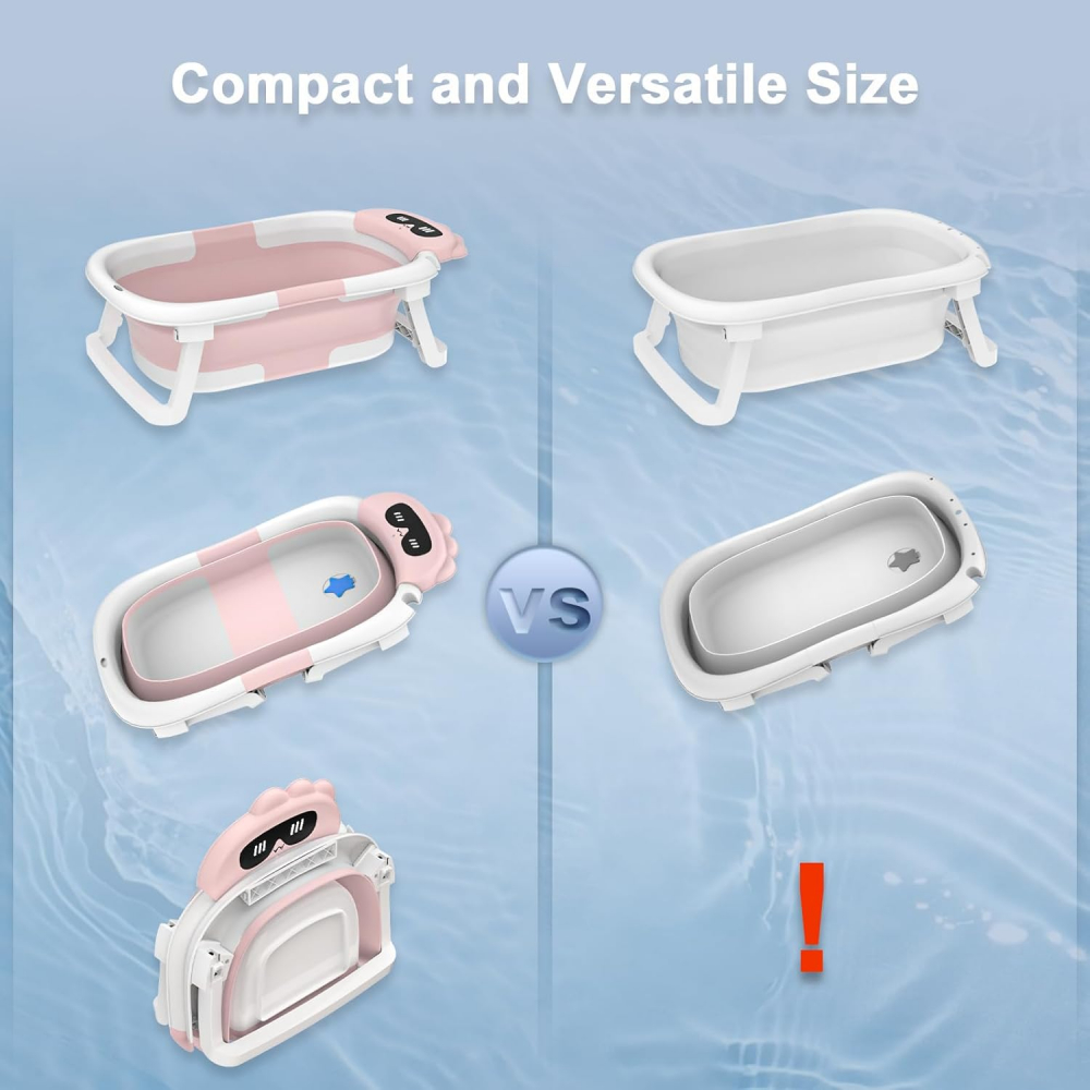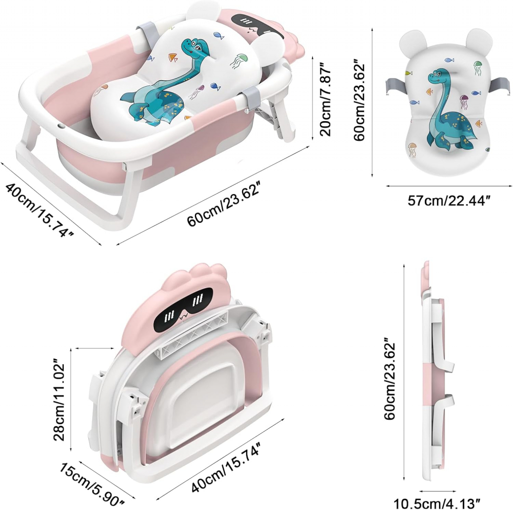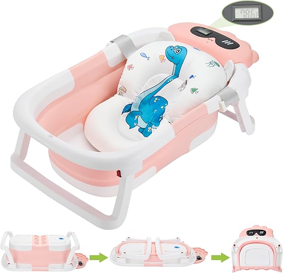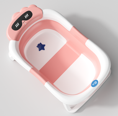 Cadita bebelusi ultrapliabila Little Mom Turtle Pink, pernuta moale detasabila,termometru incorporat,display digital,suport dus, sistem de agatare, dop pentru evacuarea apei, material Non-Toxic