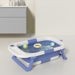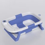 Cadita Little Mom Blue ultrapliabila cu termometru, dop evacuare, margini rotunjite, display digital masurare temperatura, dimensiuni 21 x 42 x 69.5 cm