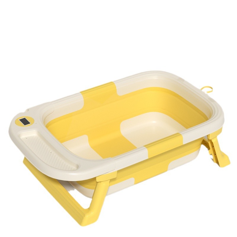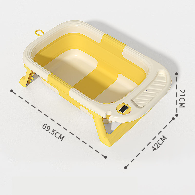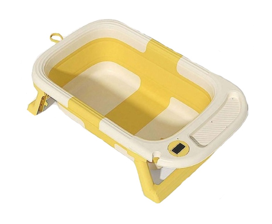 Cadita Little Mom Yellow ultrapliabila cu termometru, dop evacuare, margini rotunjite, display digital masurare temperatura, dimensiuni 21 x 42 x 69.5 cm