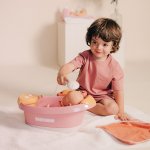 Cadita pentru papusa Smoby Baby Nurse Balneo Bath Roz cu 3 accesorii