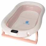 Cadita pliabila pentru bebelusi roz KidsCare, termometru, perna reductor, jucarii, protectie cap, cana pliabila este alegerea ideala pentru parintii care isi doresc un produs practic, sigur si confortabil pentru baita celor mici.