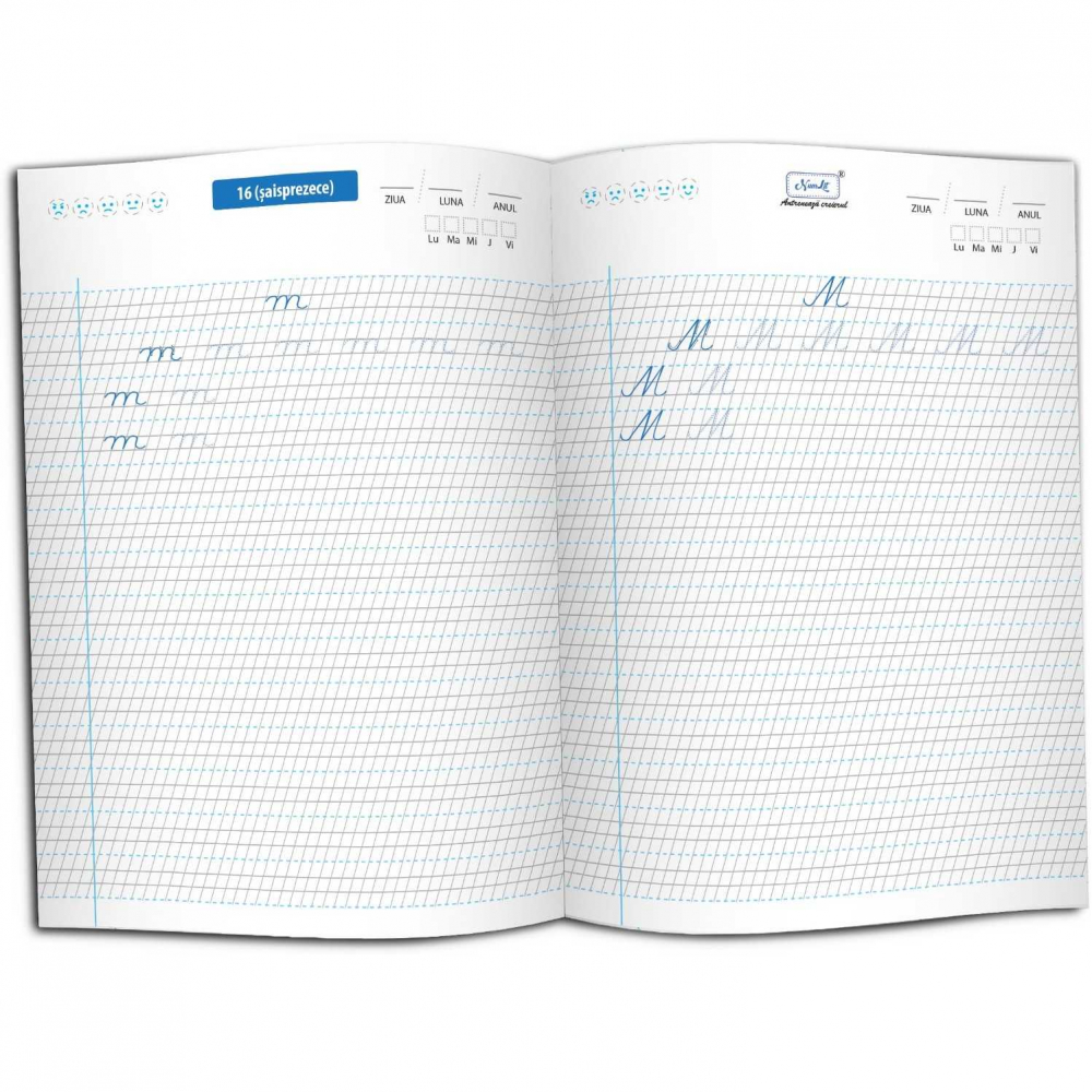 Realizat in conditii grafice deosebite si adaptat conform programelor scolare pentru clasa I, acesta are o calitate deosebita a foilor, care nu intineaza, nu se rup la stergere si nu transpare scrisul pe alte pagini.
