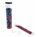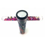 Descoperă o lume plină de lumină și culoare, cu forme schimbătoare. Sclipiciul și nisipul colorat se rotesc și curg în tub, formând modele impresionante.