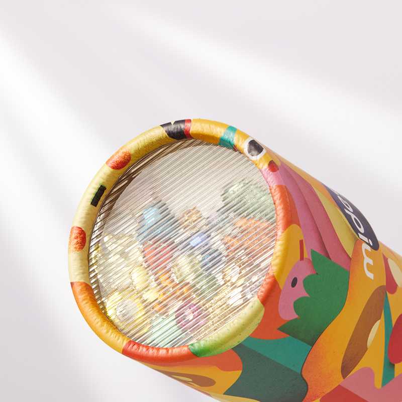 Copiii vor fi curiosi sa arunce privirea in interiorul tubului, pentru a descoperi infinitatea de culori, forme si imagini provocate de miscare.
