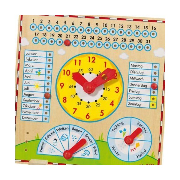 Copiii invata prin intermediul acestui joc: anotimpurile, lunile anului, zilele saptamanii, toate in limba germana, precum si orele, minutele, chiar si vremea.