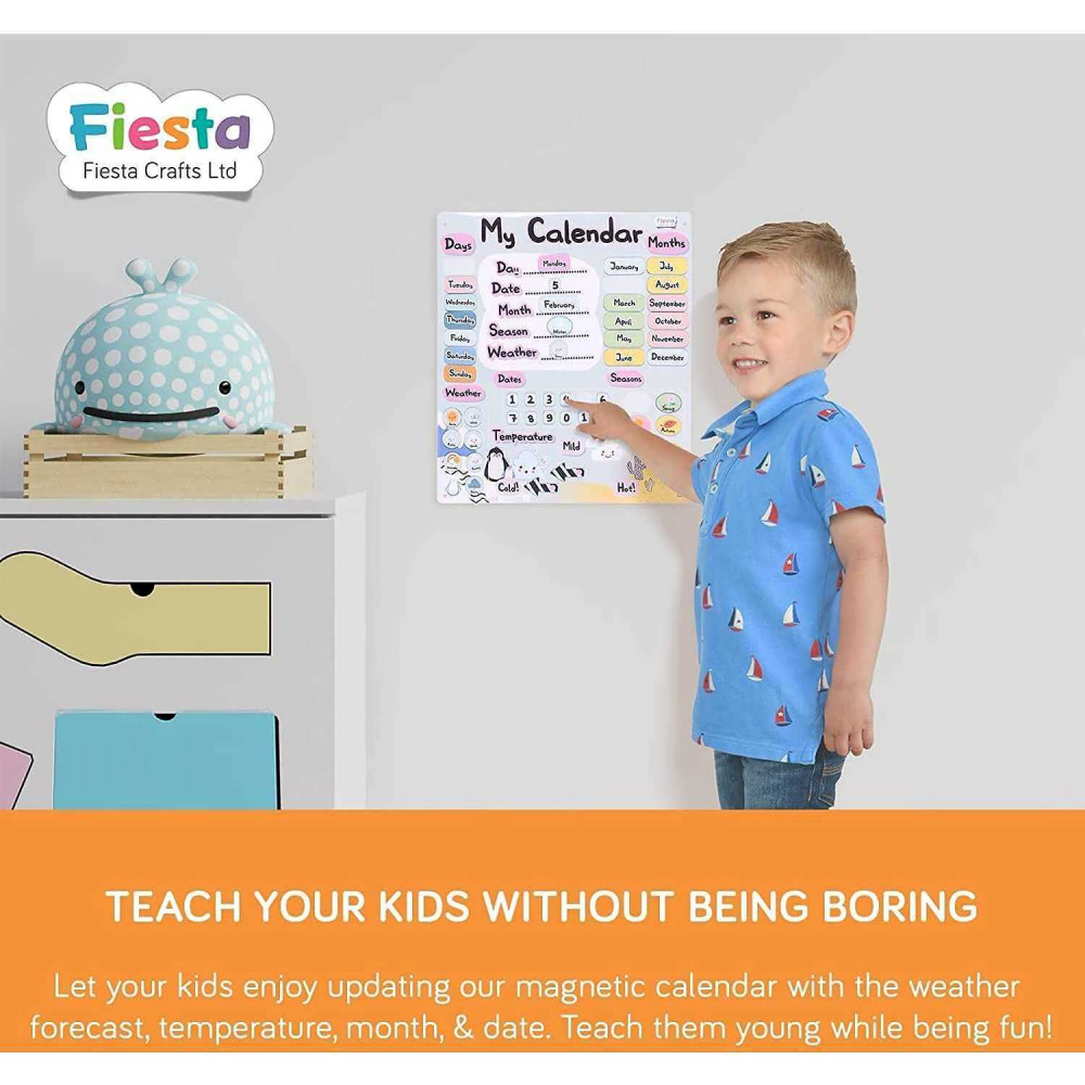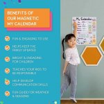 Cand vine vorba despre invatarea despre zilele saptamanii, lunile anului si vremea, calendarul meu magnetic este usor de utilizat si este atat educativ, cat si distractiv.