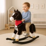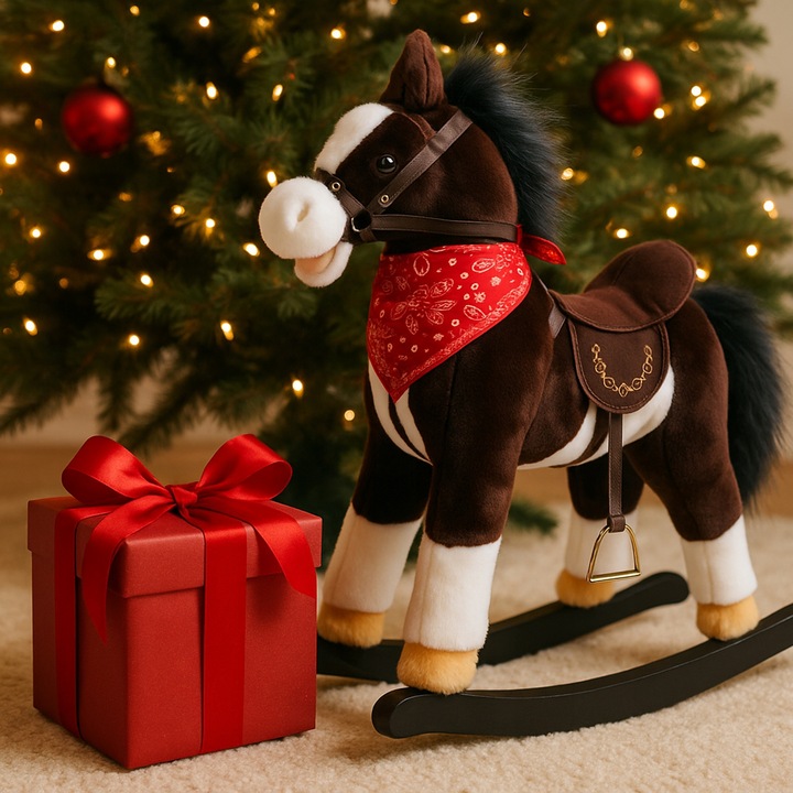 Fa-i o surpriza micutului tau cu acest cal balansoar de plus, adorabil si pufos. Nu doar ca necheaza si galopeaza, dar este animat! Isi misca gura si coada in ritmul unui cantec vesel de cowboy american!