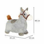 Calut gonflabil de sarit pentru copii, Ikonka grey, realizat din cauciuc imbracat in plus pufos, dimensiune 55 x 23 x 49 cm, cu pompa inclusa