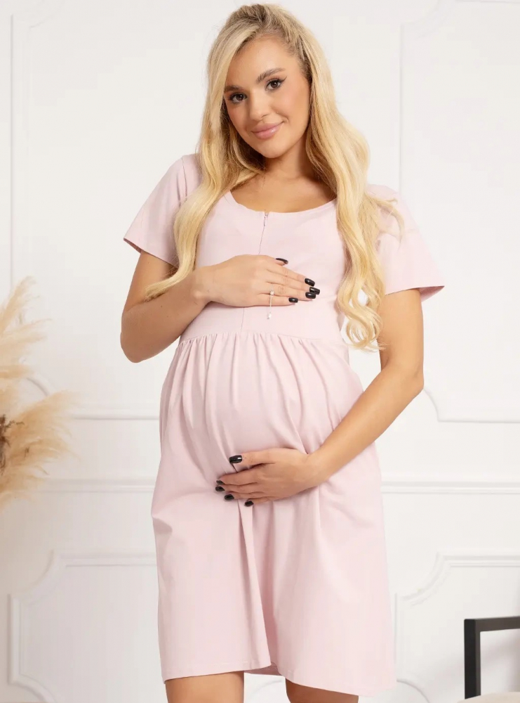 Camasa de alaptat For Mommy, din bumbac, croiala lejera cu maneca scurta, deschidere cu fermoar, lungime medie si doua buzunare laterale, masura S, Laura Pink